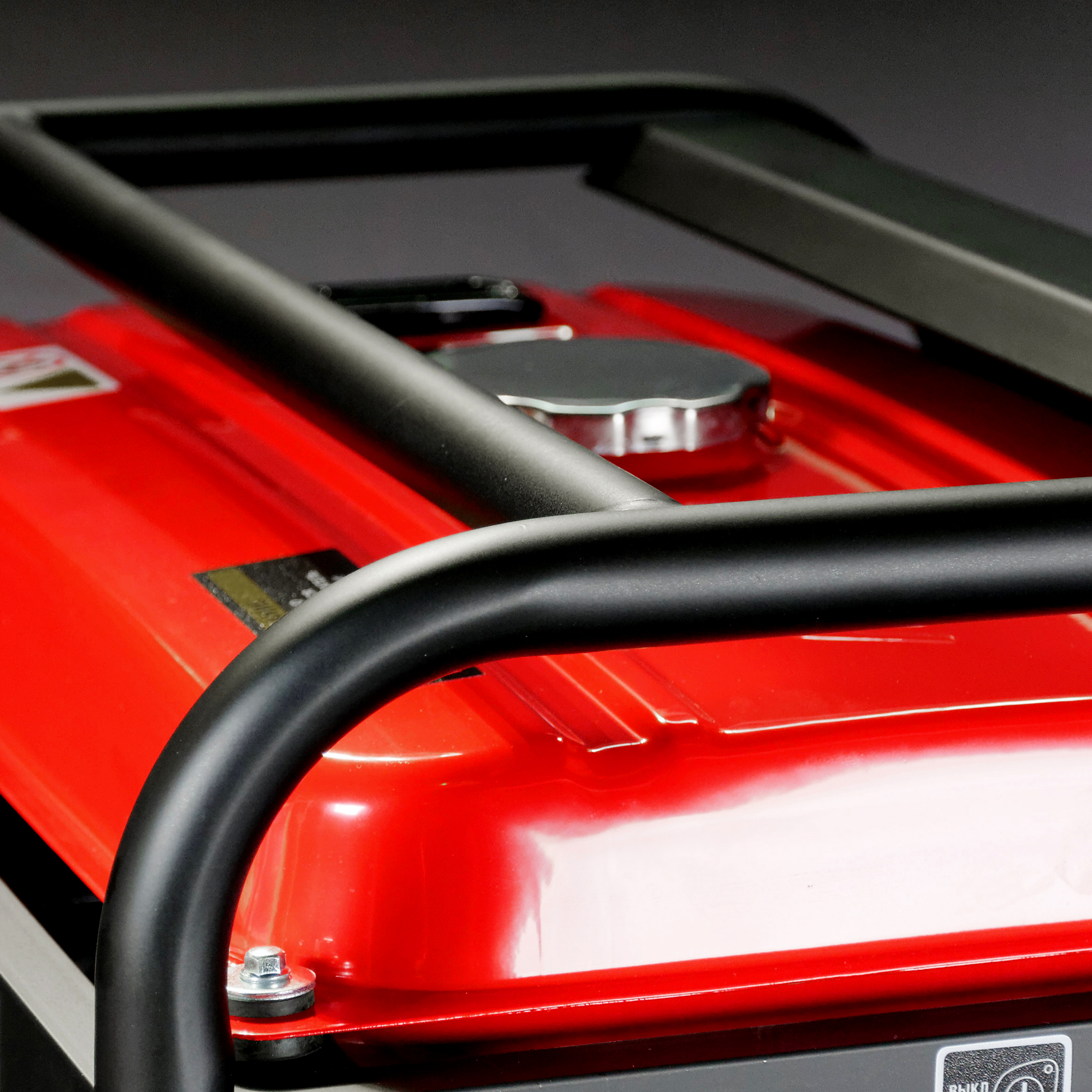 Усиленная толстостенная сварная рама, диаметром 32 мм, и запатентованный дизайн электростанций Fubag сохранят целостность конструкции даже при эксплуатации в самых тяжелых условиях, защитят важные узлы от попадания грязи и падения посторонних предметов. Рама бензинового генератора Fubag BS 6600 A ES подготовлена под установку комплекта для транспортировки. При необходимости можно установить колеса и ручки, набор поставляется опционально.