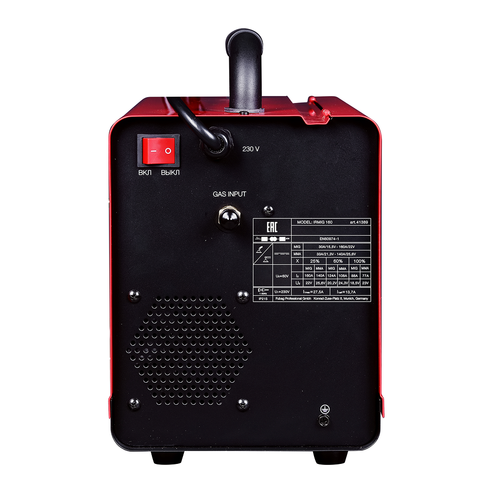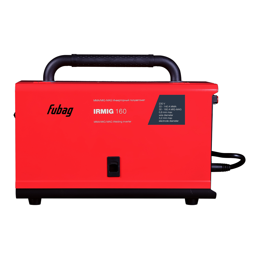 Сварочный инвертор FUBAG IRMIG 160 – высокопроизводительный сварочный полуавтомат, оптимален для проведения сварочных работ на производстве, стройке и в автомастерской. Аппарат позволяет проводить сварку в режимах MIG/MAG и ММА, оснащен евроразъемом для быстрого и безопасного подключения сварочной горелки, а также металлическим подающим механизмом. Благодаря плавной регулировке сварочного тока, скорости подачи проволоки и функции регулировки индуктивности, полуавтомат позволяет установить режим сварки для конкретной толщины и материала свариваемых заготовок.Сварочный инвертор IRMIG 160 работает в диапазоне тока 30-160А в режиме MIG/MAG омедненной проволокой диаметром 0,6-0,8 мм с катушкой весом до 5 кг и диаметром 200 мм. Универсальный держатель проволоки позволяет надежно крепить катушки внутри аппарата.