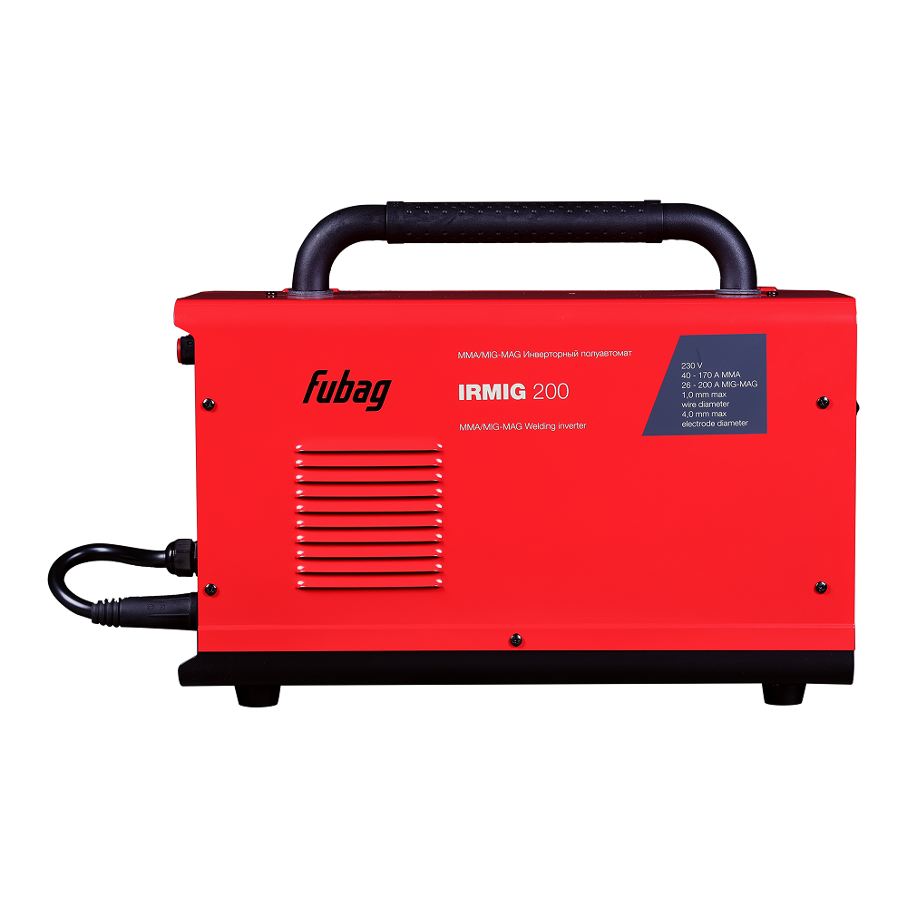 Сварочный инвертор FUBAG IRMIG 200 – высокопроизводительный сварочный полуавтомат, оптимален для проведения сварочных работ на производстве, стройке и в автомастерской. Аппарат позволяет проводить сварку в режимах MIG/MAG и ММА, оснащен евроразъемом для быстрого и безопасного подключения сварочной горелки, а также металлическим подающим механизмом. Благодаря плавной регулировке сварочного тока, скорости подачи проволоки и функции регулировки индуктивности, полуавтомат позволяет установить режим сварки для конкретной толщины и материала свариваемых заготовок.Сварочный инвертор IRMIG 200 работает в диапазоне тока 30-200А в режиме MIG/MAG омедненной проволокой диаметром 0,6-1 мм с катушкой весом до 5 кг и диаметром 200 мм. Универсальный держатель проволоки позволяет надежно крепить катушки внутри аппарата.