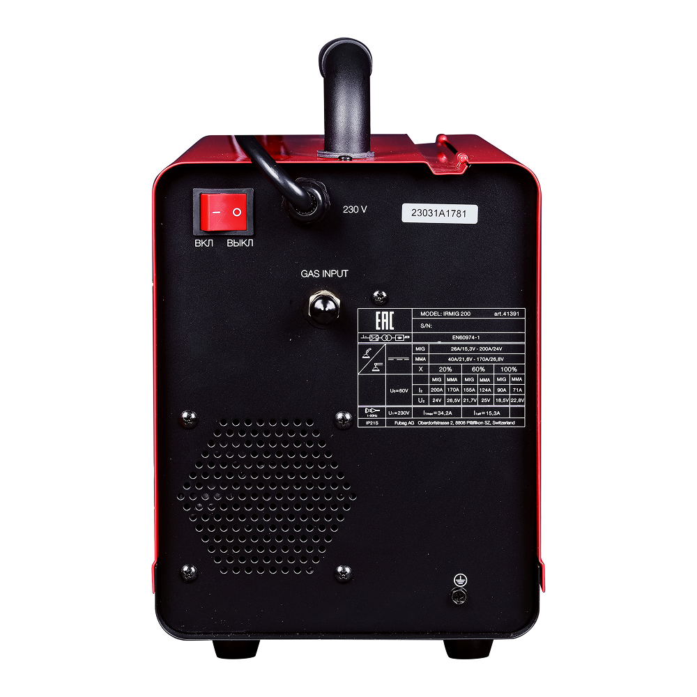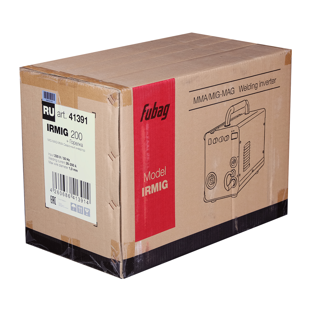 Все технические характеристики наглядно и подробно указаны на корпусе аппарата. Сварочный полуавтомат Fubag IRMIG 200 поставляется с полным набором аксессуаров для MIG/MAG и ММА сварки.