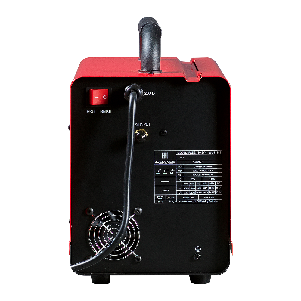 Сварочный полуавтомат Fubag IRMIG 160 SYN – высокопроизводительный сварочный аппарат, который может работать в режимах ММА, MIG/MAG и TIG сварки и имеет синергетическое управление в режиме полуавтоматической сварки для проволоки диаметром 0,8 мм . Аппарат работает в самом распространенном диапазоне сварочного тока 15-160 А с проволокой диаметром от 0,8 мм, катушкой весом 5 кг и диаметром 200 мм. Высокую производительность сварочной работы обеспечивает автоматическая подача проволоки. Регулировка подачи проволоки, сварочного напряжения и индуктивности в ручном режиме позволяет настроить оптимальный режим сварки. Передняя панель оснащена регуляторами силы тока и скорости подачи проволоки, что позволяет быстро и просто выбирать режимы и оптимальные параметры сварки. Сварочный полуавтомат Fubag IRMIG 160 SYN оснащен евроразъемом для быстрого и безопасного подключения сварочной горелки. Купив сварочный инвертор IRMIG 160 SYN, вы получите в коробке фирменную горелку 250 А и газовый шланг, а также кабель с электрододержателем и кабель заземления. Продолжительность включения (ПВ) составляет 25% при 40С. Эти данные приведены в соответствии с европейским стандартом EN60974-1 при внешней температуре 40С. Часто на рынке используется значение ПВ при температуре окружающей среды 20С: чем ниже температура, тем выше ПВ. Сварочный полуавтомат Fubag IRMIG 160 SYN обладает легкой сменой полярности для работы с самозащитной проволокой. Эффективная система охлаждения, а также встроенная функция термозащиты с индикацией перегрева гарантируют долговечность и надежность использования аппарата в условиях интенсивной эксплуатации. Быстрое подключение сварочных кабелей и евроразъем для подключения горелки гарантируют удобство использования. Все технические характеристики наглядно и подробно указаны на корпусе аппарата. Сварочный полуавтомат Fubag IRMIG 160 SYN поставляется с полным набором аксессуаров для MIG/MAG и ММА сварки . В интернет-магазине fubag.ru вы можете скачать инструкцию по подключению и использованию сварочного полуавтомата Fubag IRMIG 160 SYN, а также фотографии аппарата в различных ракурсах, его характеристики и полное описание.Преимущества сварочного полуавтомата Fubag IRMIG 160 SYN: