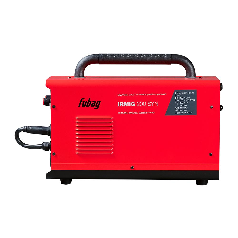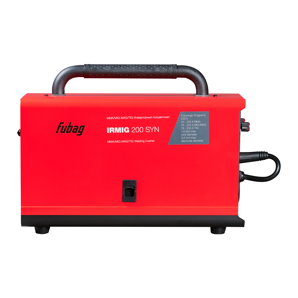 Сварочный полуавтомат Fubag IRMIG 200 SYN – высокопроизводительный сварочный аппарат. Работает в режимах MIG/MAG, MMA, TIG LIFT DC. Имеет 5 встроенных синергетический программ и функцию VRD (в режиме MMA). Оснащён цифровым дисплеем. Аппарат работает в самом распространенном диапазоне сварочного тока 15-200 А с проволокой диаметром от 0,6-1,0 мм, катушкой весом 5 кг и диаметром 200 мм. Высокую производительность сварочной работы обеспечивает автоматическая подача проволоки. Регулировка подачи проволоки, сварочного напряжения и индуктивности в ручном режиме позволяет настроить оптимальный режим сварки. Передняя панель оснащена регуляторами силы тока и скорости подачи проволоки, что позволяет быстро и просто выбирать режимы и оптимальные параметры сварки. Сварочный полуавтомат Fubag IRMIG 200 SYN оснащен евроразъемом для быстрого и безопасного подключения сварочной горелки. Купив сварочный инвертор IRMIG 200 SYN, вы получите в коробке фирменную горелку 250 А и газовый шланг, а также кабель с электрододержателем и кабель заземления. Продолжительность включения (ПВ) составляет 20% при 40С. Эти данные приведены в соответствии с европейским стандартом EN60974-1 при внешней температуре 40С. Часто на рынке используется значение ПВ при температуре окружающей среды 20С: чем ниже температура, тем выше ПВ. Сварочный полуавтомат Fubag IRMIG 200 SYN обладает легкой сменой полярности для работы с самозащитной проволокой. Эффективная система охлаждения, а также встроенная функция термозащиты с индикацией перегрева гарантируют долговечность и надежность использования аппарата в условиях интенсивной эксплуатации. Быстрое подключение сварочных кабелей и евроразъем для подключения горелки гарантируют удобство использования. Все технические характеристики наглядно и подробно указаны на корпусе аппарата. Сварочный полуавтомат Fubag IRMIG 200 SYN поставляется с полным набором аксессуаров для MIG/MAG и ММА сварки . В интернет-магазине fubag.ru вы можете скачать инструкцию по подключению и использованию сварочного полуавтомата Fubag IRMIG 200 SYN, а также фотографии аппарата в различных ракурсах, его характеристики и полное описание.Основные преимущества полуавтомата сварочного FUBAG IRMIG 200 SYN